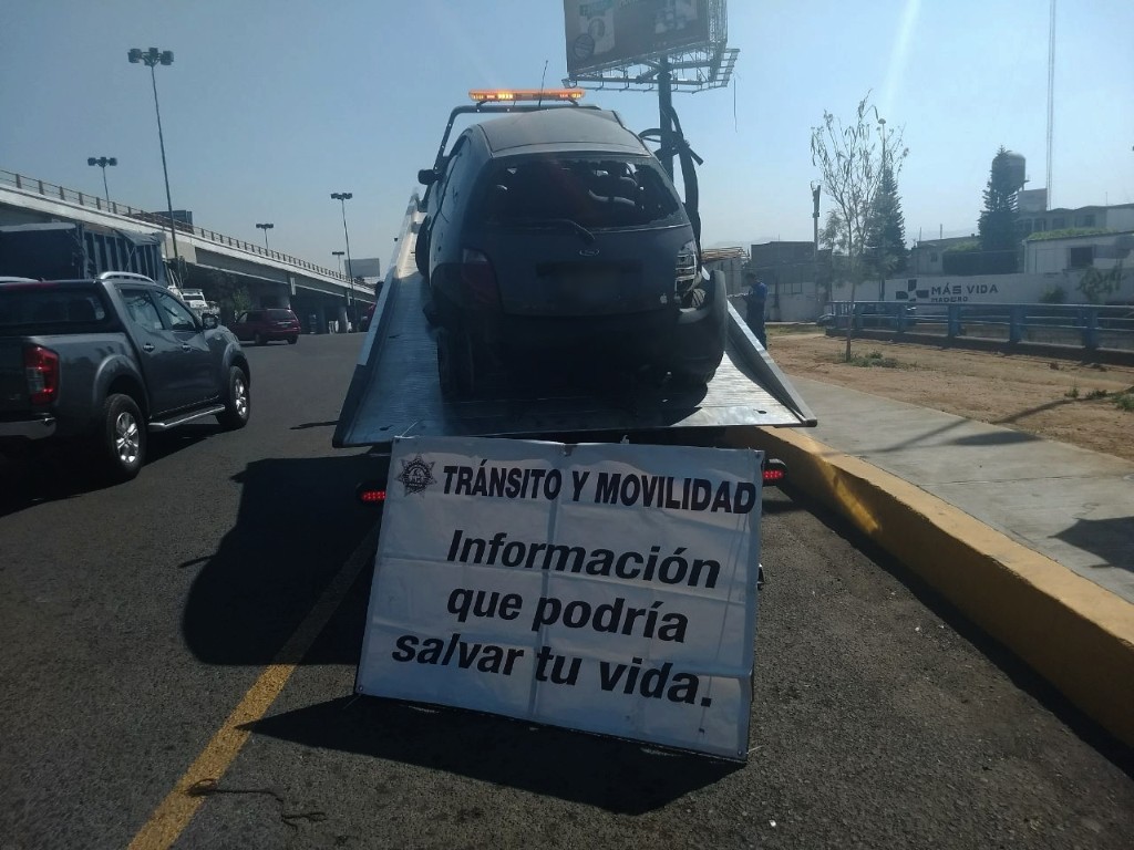 Además, fue colocado un vehículo siniestrado y una lona alusiva a la campaña, los cuales muestran el impacto de no tomar las medidas preventivas al conducir.