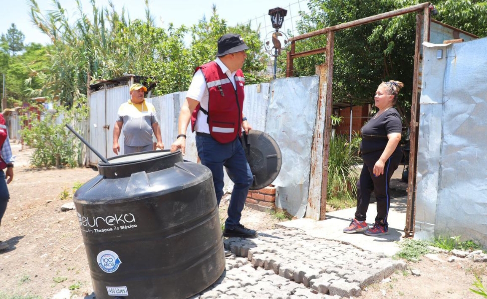 Barragán entregó tinacos y lámparas para el alumbrado público en las colonias Agustín Arriaga y el Durazno.