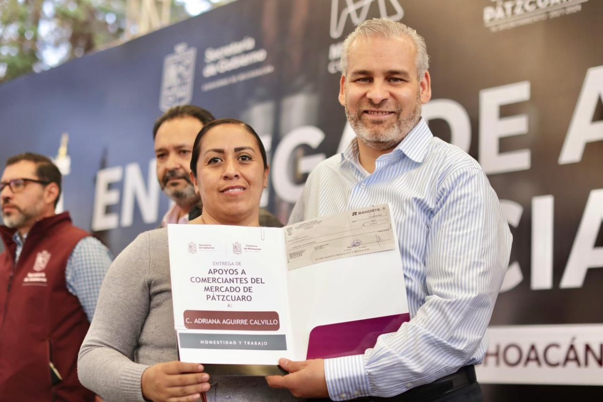 Cumple Bedolla, entrega apoyos a comerciantes reubicados del mercado de Pátzcuaro