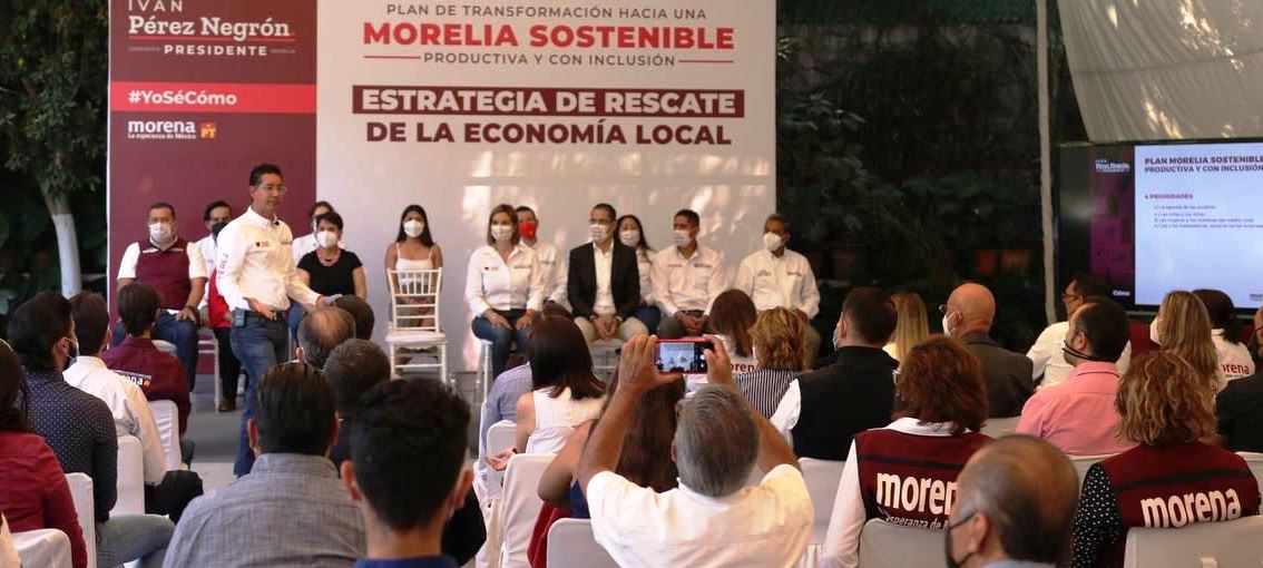 Morelia, Mich., a 5 de Mayo 2021.- «Juntos vamos a rescatar nuestra economía, porque nosotros sí sabemos cómo» mencionó Iván Pérez Negrón, candidato a la alcaldía de Morelia durante la presentación de su Plan de Transformación.