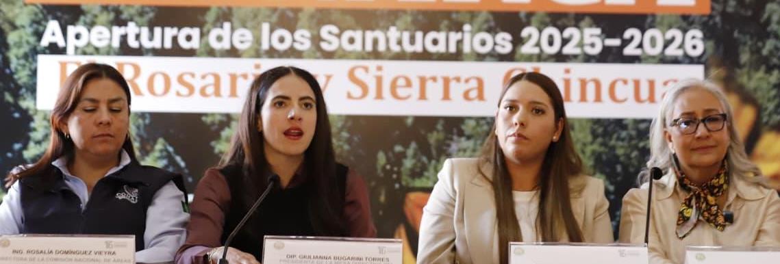 Esto, en el marco de la rueda de prensa que se celebró con motivo de la apertura 2025-2026 de los santuarios “El Rosario” y “Sierra Chincua”, en donde la diputada Emma Rivera Camacho hizo una invitación a la ciudadanía en general para que asistan a ver la llegada de las mariposas monarcas al oriente michoacano.