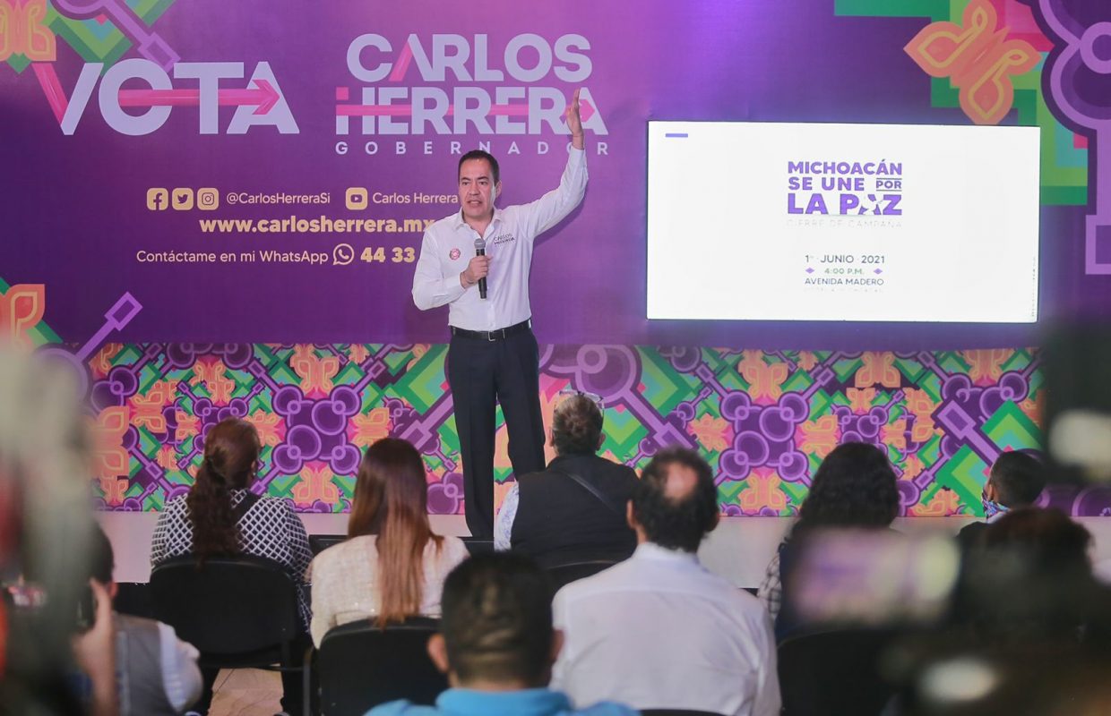 Carlos Herrera puntualizó que los ejes de su campaña se sustentan en un Michoacán Parejo, Michoacán con Chamba, Michoacán Prospera, Michoacán con Paz, Michoacán de Buenas Obras, Maestros con Educación, Salvar a la Madre Tierra y Gobierno Derecho.