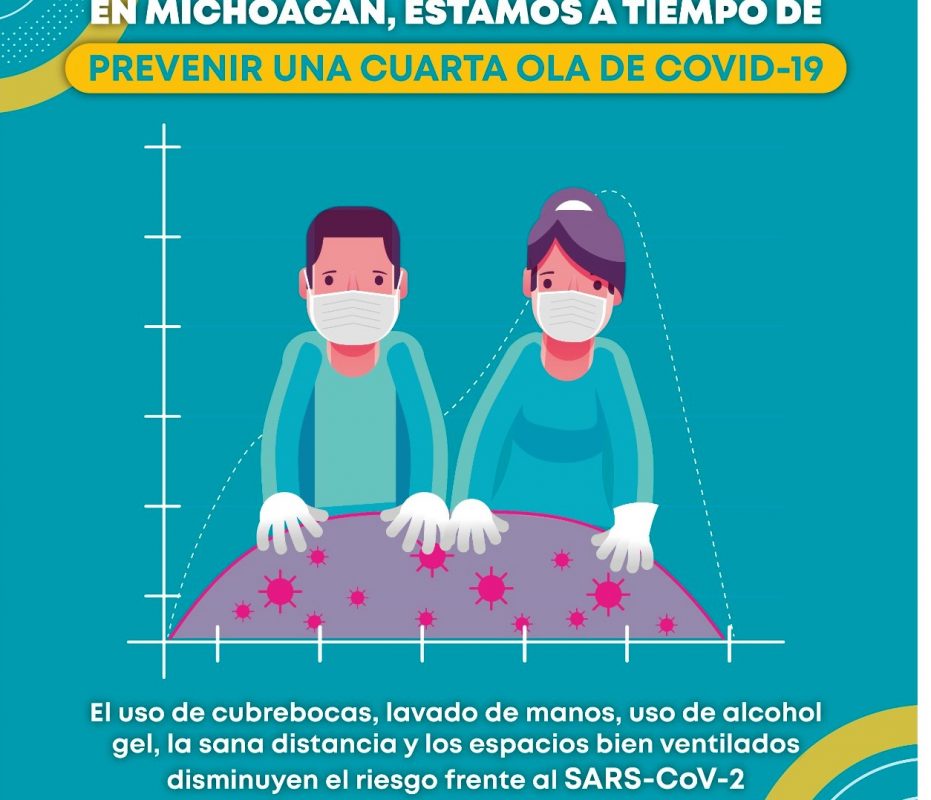 Morelia, Mich., a 23 de Septiembre de 2021.- La Secretaría de Salud de Michoacán (SSM), exhorta a la población a extremar las medidas sanitarias contra el COVID-19 ante una posible cuarta ola de contagios durante la temporada invernal.