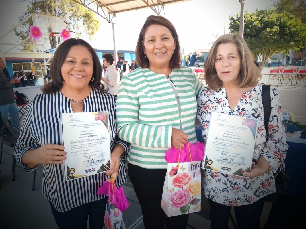 La ceremonia tuvo lugar en la Escuela Primaria «Rafael C. Haro» de la Colonia Miguel Hidalgo, un espacio que ha sido testigo de los años de servicio de estas maestras ejemplares.