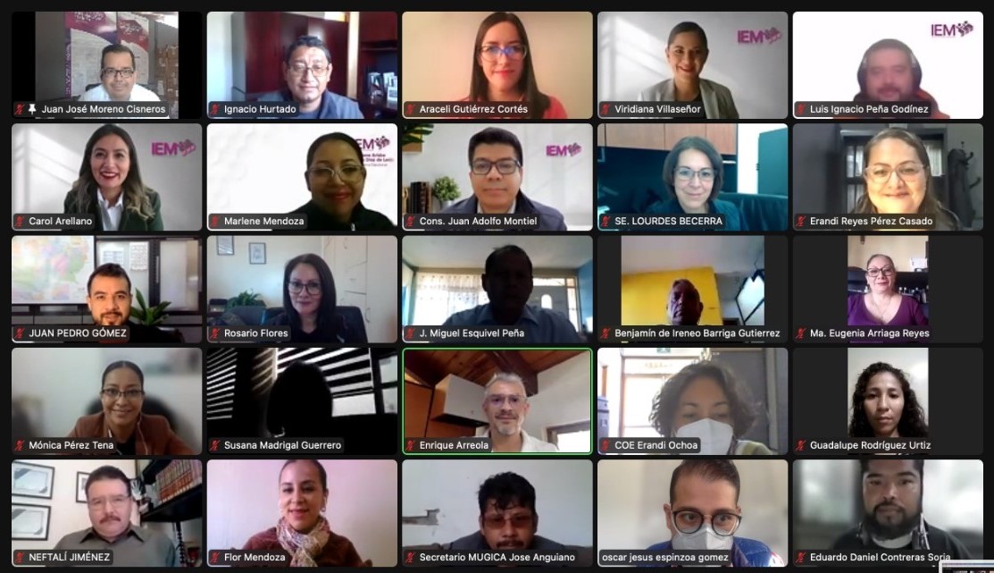 De igual forma, se contó con la participación de la Secretaría Ejecutiva del IEM, así como las y los titulares de las Direcciones Ejecutivas de Administración, Organización Electoral, Educación Cívica y Participación Electoral y Vinculación y Servicio Profesional Electoral.