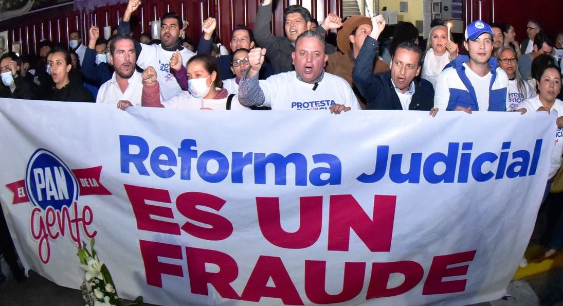 A su vez, María de los Ángeles Toro Preciado, Secretaria General del CDE del PAN, advirtió que Morena busca dinamitar al Poder Judicial con jueces, magistrados y ministros a modo, para que éstos sean simples brazos serviles al autoritarismo del gobierno federal.