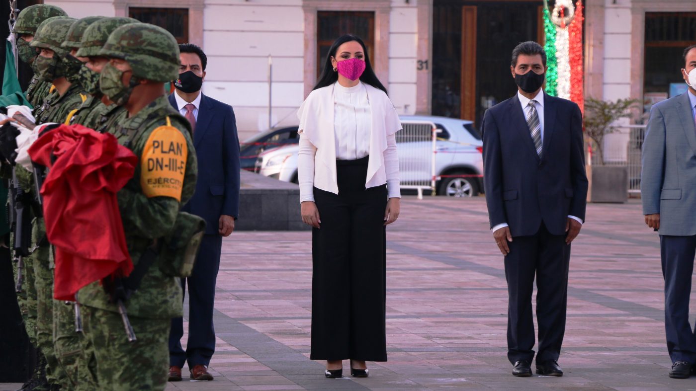 Morelia, Mich., a 16 de Septiembre de 2021.- Adriana Hernández Íñiguez, Diputada Presidenta de la Mesa Directiva del Congreso del Estado, asistió esta mañana al izamiento de la Bandera Nacional, en la plaza Melchor Ocampo, con motivo del 211 aniversario del inicio de la Independencia de México.