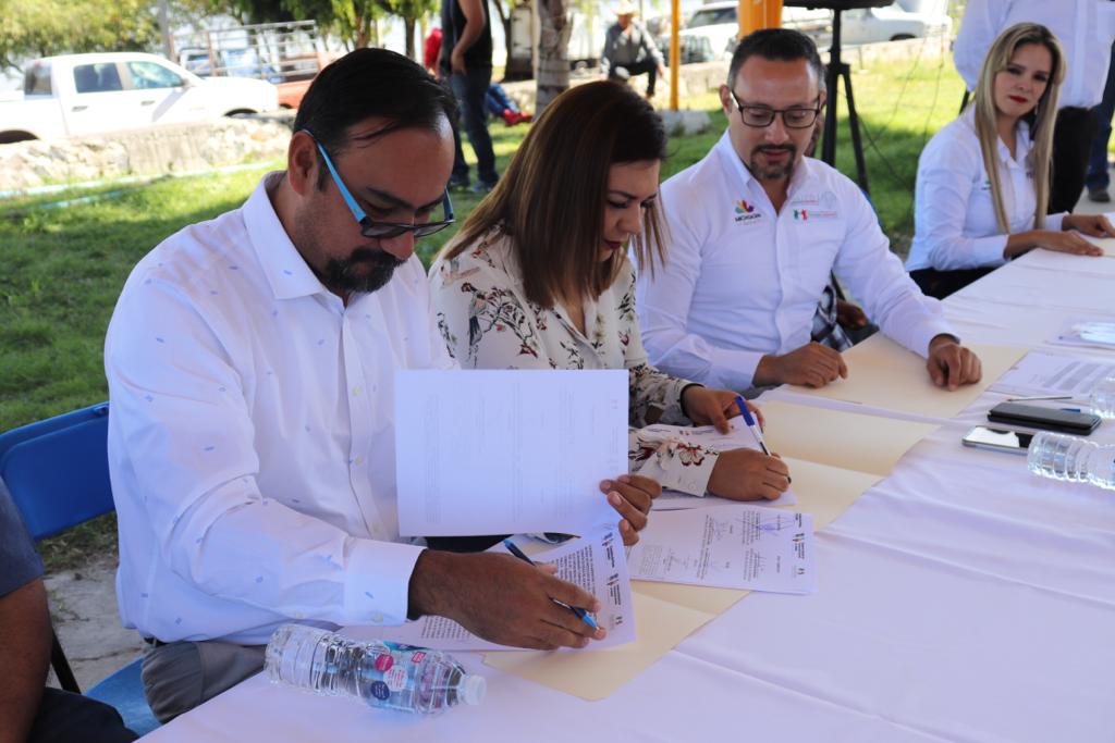 La Palma, mpio. de Angamacutiro, Michoacán, a 26 de noviembre del 2018.- El Seguro Popular y la Comisión de Pesca del Gobierno de Michoacán (Compesca), a través de sus titulares, Germán Ortega Silva y Julio Vargas Medina, respectivamente, firmaron un convenio de concertación de acciones en promoción y afiliación, para otorgar a los pescadores y sus familias cobertura en servicios de salud de manera gratuita.