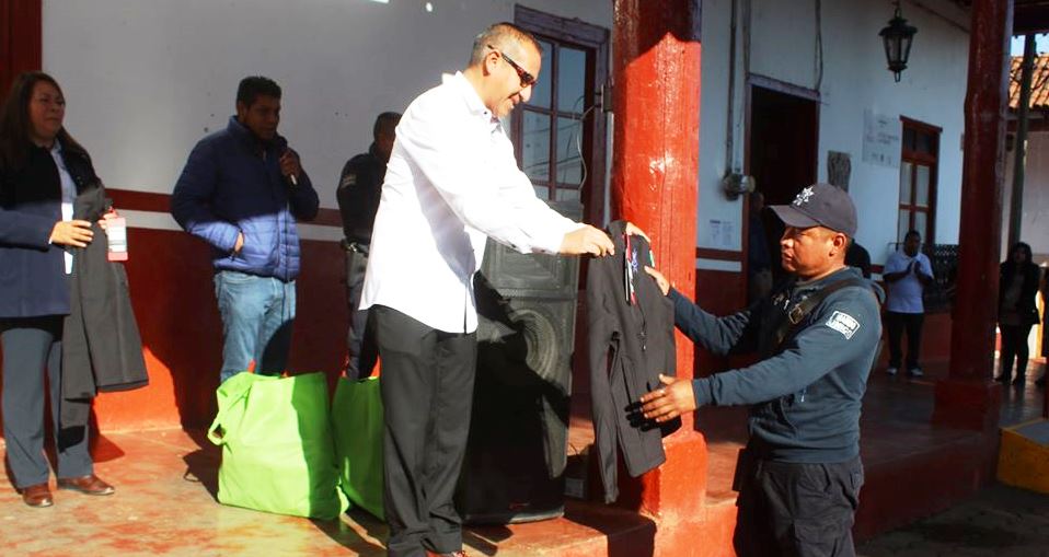al reiterar su compromiso de trabajo en éste rubro, el alcalde Alejandro García Serna, llevó a efecto la entrega de chamarras para cada elemento, pues ante las bajas temperaturas que se registran en esta zona, los miembros de seguridad requieren de contar con abrigos para el cumplimiento de su deber.