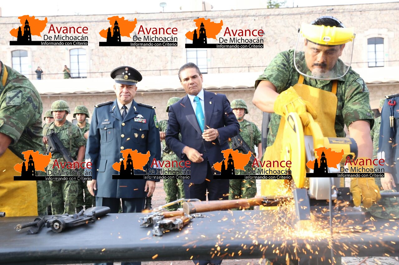 Al dirigir un mensaje, el Gobernador de Michoacán destacó que la destrucción de armas es una muestra del compromiso de las instituciones de seguridad tanto federales como estatales para seguir haciéndole frente a las actividades de delincuencia en la entidad.