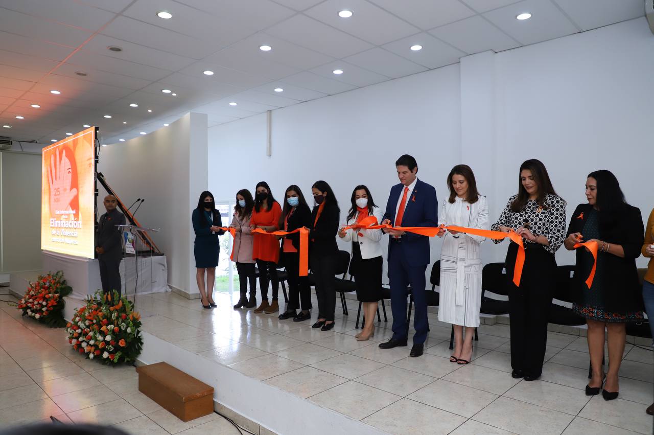 Morelia, Mich., a 25 de noviembre del 2021.- Con el compromiso por visibilizar y atender la violencia contra la mujer en el municipio, el alcalde, Alfonso Martínez Alcázar en compañía de su esposa y presidenta honoraria del DIF Morelia, Paola Delgadillo, la titular del Instituto Municipal de la Mujer, Gabriela Ceballos, integrantes de asociaciones de mujeres y regidoras, inauguró la Casa Refugio que desde hoy se puso en marcha y que contará con la participación activa de la Policía de Morelia con la Unidad de Atención Especial para la Violencia de Género.