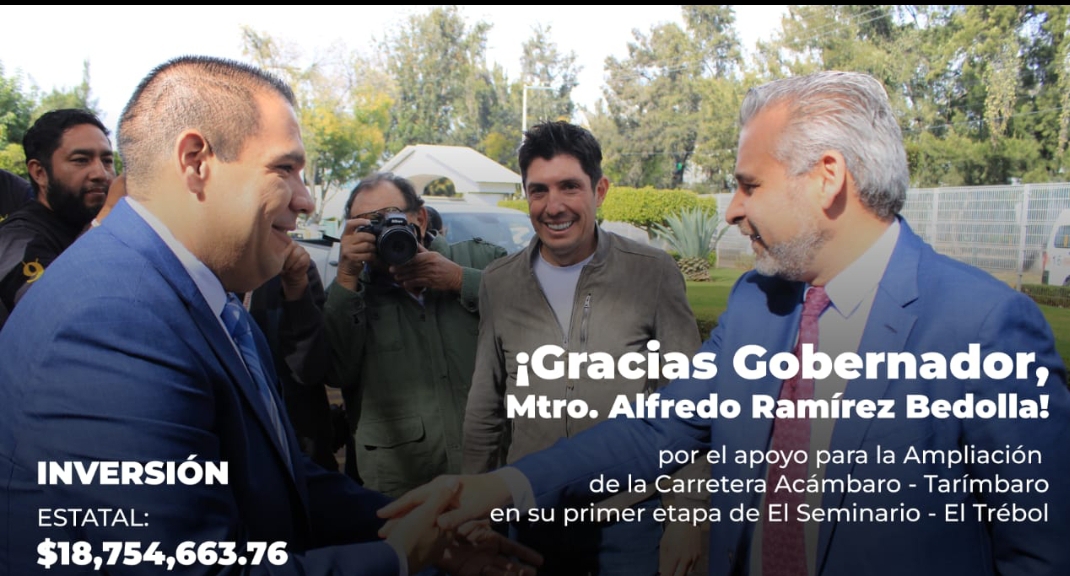“El proyecto que se veía a largo plazo y rezagado es una realidad, gracias a la inversión que realiza el Gobierno del Estado en el municipio de Tarímbaro para ampliar y modernizar la vía urbana federal Acámbaro – Tarímbaro, beneficiando a miles de habitantes y diferentes municipios circunvecinos;” resaltó el edil Bladimir González.