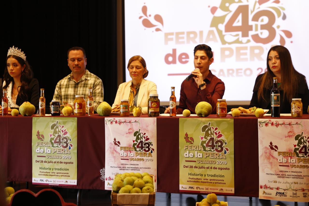 Morelia, Michoacán, a 23 de julio de 2019.- Del 28 de Julio al 4 de agosto, Ucareo realizará su tradicional feria de la Pera 2019, cuyo objetivo principal es la exposición y venta de frutas, conservas y licores de la región, informó en conferencia de prensa el presidente del Comité Organizador, Jesús Ayala Farfán.