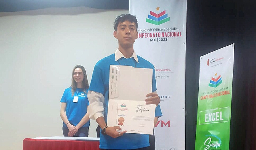 Morelia, Mich., 26 de Mayo de 2023.- El alumno Luis Gerardo Ayala Oros del Colegio de Educación Profesional Técnica del Estado de Michoacán (Conalep), plantel Morelia II, de la carrera de Informática, conquistó el tercer lugar del Campeonato Nacional Microsoft Office Specialist (MOS) MX 2023, en la categoría Microsoft Word 2016.