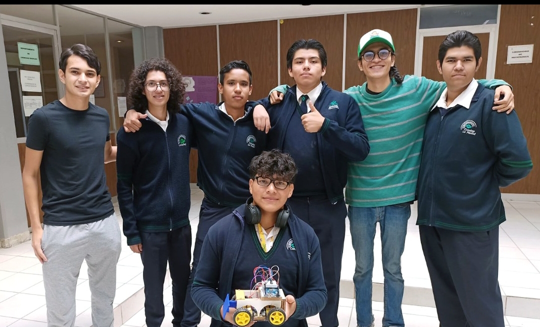 Fernando Morales Arias, Fermín Antonio Ibarra Ramírez, Luis Alberto Bermúdez, Diego Jesús Muñoz Andrade, Jonathan Rea Bravo y José Alberto Ortiz, estudiantes de cuarto semestre de la carrera de Informática, y ganadores del tercer lugar, compitieron en la modalidad de mini-sumo, la cual consiste en construir un robot que de manera autónoma pueda combatir contra su oponente.