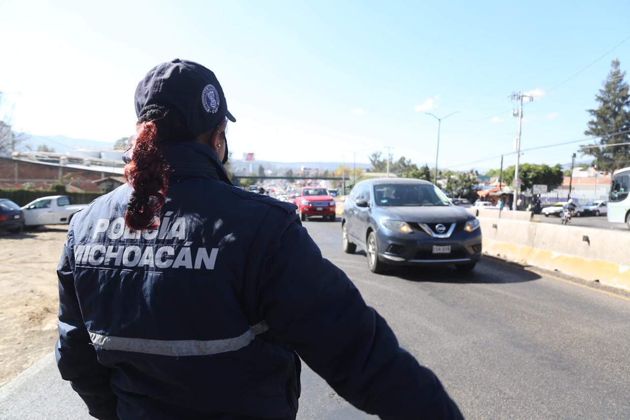 Ante la colocación de Banderas Rojas, elementos de la Policía Michoacán mantienen presencia en las principales salidas y accesos a la ciudad, realizando la difusión de las medidas preventivas y sanitarias emitidas por los especialistas en salud, para hacer frente a la contingencia sanitaria en la capital michoacana.