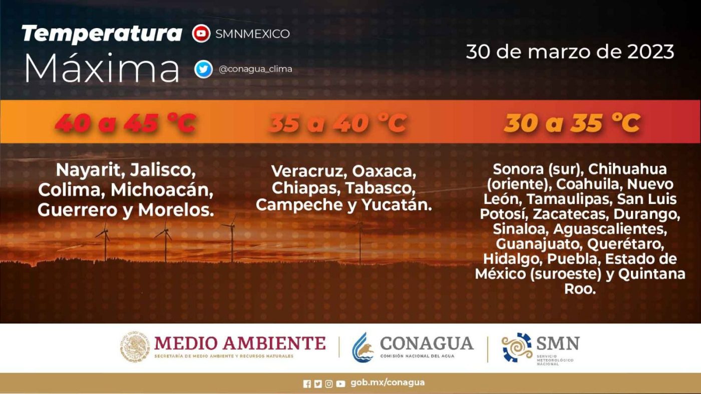 Pronósticos del Servicio Meteorológico Nacional indican que el termómetro registrará temperaturas superiores a los 40 grados en zonas de la Tierra Caliente y Costa, mientras que en el resto de la entidad, se alcanzarían los 30 grados Celsius.
