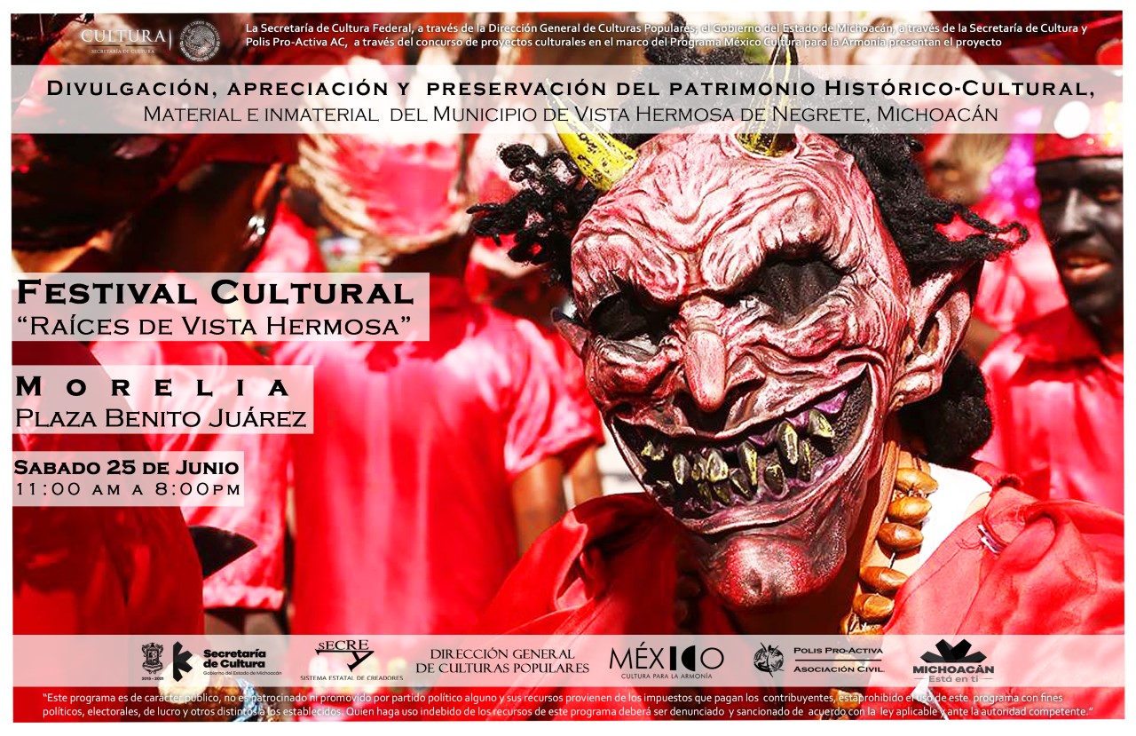 Morelia, Mich., a 21 de Junio del 2016.,- Miembros de la Organización Polis Proactiva, A.C., en voz de Ismael Salazar, anunciaron que será a partir de este sábado 25 de Junio cuando se lleve a efecto el Festival Cultural Raíces de Vista Hermosa, con el cual se habrán de verificar diversos eventos.