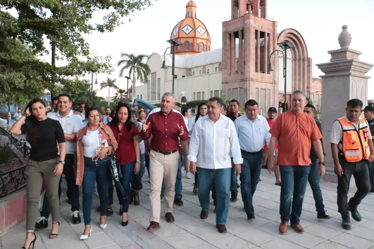 En la visita del mandatario estatal, el presidente, Cruz Lucatero, destacó que la rehabilitación de la plaza principal es un gran proyecto integral que incluye alumbrado público; jardinería; sistema de riego; musicalización; fuente danzante; asta bandera; así como la reubicación de los bustos de Los Constituyentes y la fuente que fue recubierta por cantera.