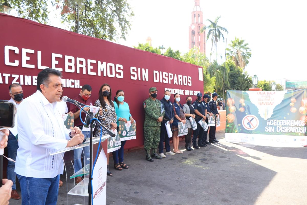 Apatzingán, Mich., a 20 de Diciembre del 2021.- Con la finalidad de concluir el año 2021 y comenzar el 2022 con saldo blanco, las autoridades municipales y de seguridad dieron el banderazo de arranque del operativo “Celebremos sin disparos” exhortando a la ciudadanía a no usar armas de fuego durante las celebraciones de Navidad y Año Nuevo, ya que dicha práctica podría enlutar a una familia.