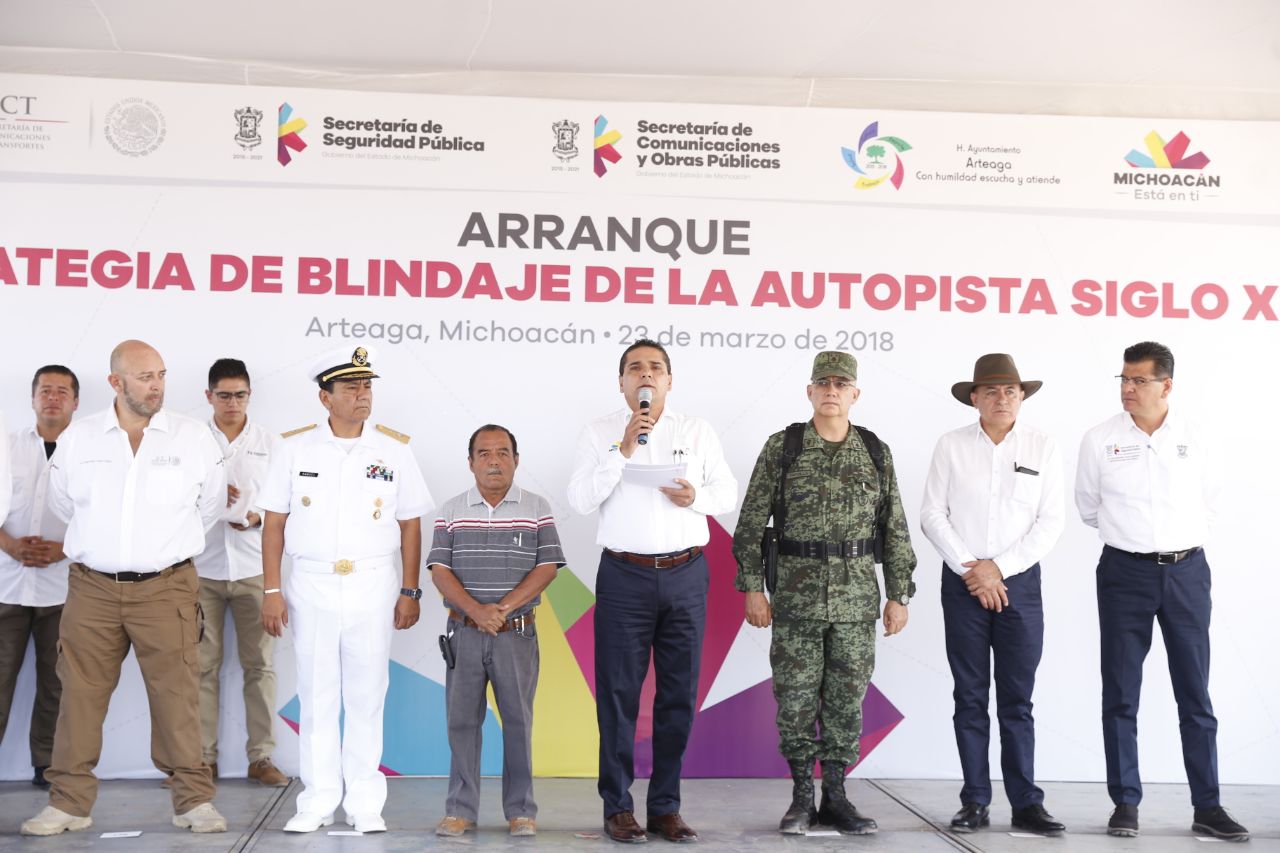 Hoy iniciamos una estrategia distinta, nueva, para blindar esta región de Michoacán, empezando por el eje carretero, la autopista denominada Siglo XXI. Qué significa ello, primero, que hay la determinación de que nada ni nadie va a detener el trabajo de las instituciones para garantizar o en la búsqueda de garantizar la seguridad de todas y de todos los michoacanos y desde luego también para las personas que transitan por esta vía o que nos visitan, incluyendo por supuesto a la gente que habita en estas comunidades particularmente perteneciente a la Tenencia de Las Cañas.