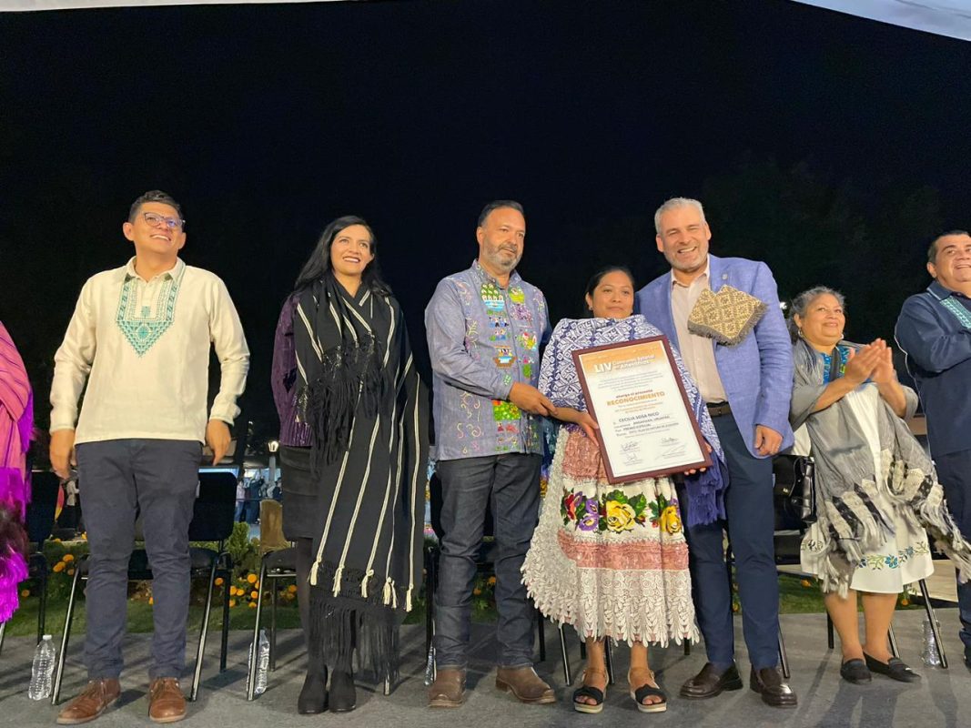 “Me siento muy feliz de haber ganado este premio tan importante, sólo había ganado premios especiales y primeros lugares, y esto me motiva a seguir participando y haciendo mejores piezas”, compartió la maestra artesana al tener en sus manos el Premio Especial Teresa Dávalos, en la rama textil.