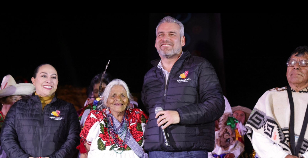 Acompañado de su esposa Grisel Tello Pimentel; de los secretarios de Turismo y Cultura, Roberto Monroy García y Tamara Sosa Alanís, respectivamente, el Gobernador celebró la esencia de la gran fiesta de Michoacán que se manifiesta en las Yácatas de Tzintzuntzan, estructuras del antiguo imperio purépecha.
