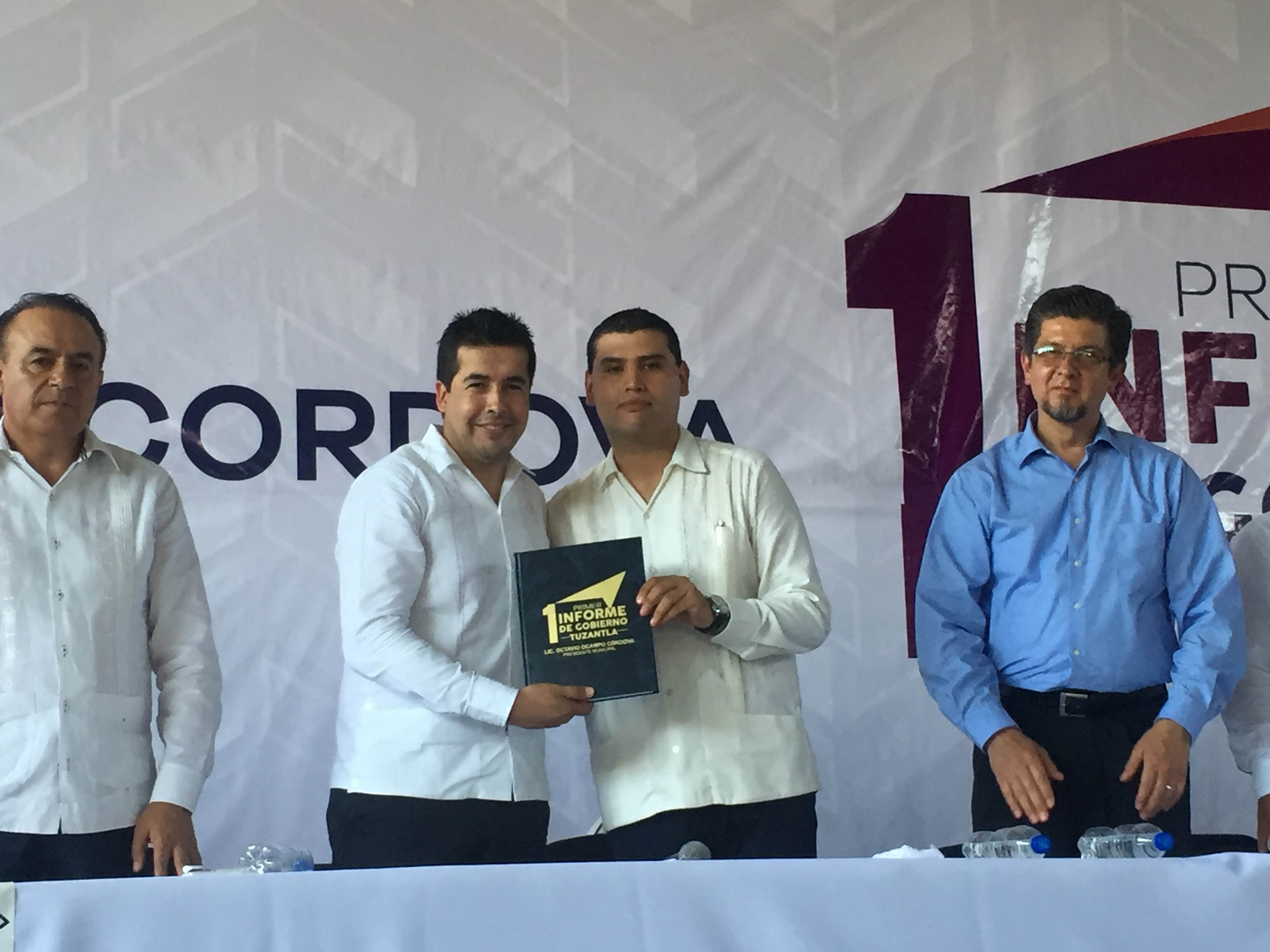 Tuzantla, Mich., a 13 de agosto del 2016.- Con la representación del Gobernador del Estado, Silvano Aureoles Conejo, el Vocal Ejecutivo del Centro Estatal para el Desarrollo Municipal (Cedemun), Carlos Paredes Corres, asistió al Primer Informe de Gobierno del presidente de Tuzantla, Octavio Ocampo Córdova, que se realizó en la Pista Ejidal ante una gran audiencia.