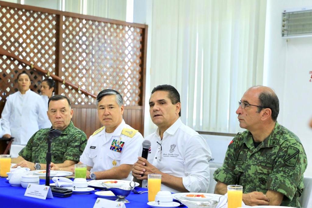 En la reunión estuvieron presentes el comandante de la 10 Zona Naval, vicealmirante Rubén Alfonso Vargas Suárez; el secretario de Seguridad Pública, Juan Bernardo Corona Martínez; el fiscal general de Michoacán, Adrián López Solís; el subsecretario de Gobierno, Armando Hurtado Arévalo; el comandante de la 43 Zona Militar, general Enrique Martínez López.