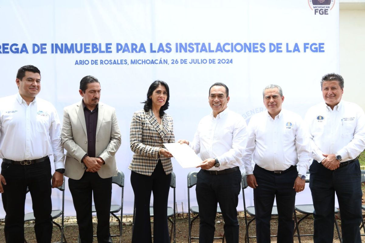 En el marco de la ceremonia de entrega de escrituras del predio que albergará la agencia del Ministerio Público y Servicio Médico Forense en Ario de Rosales, el Fiscal General del Estado reconoció el apoyo de las autoridades municipales, encabezado por su presidenta, Irma Moreno Martínez, para generar estas condiciones de mejora de infraestructura, ya que ello evitará que las personas que enfrentan alguna pérdida ante un hecho constitutivo de delito, tengan que desplazarse a la ciudad de Uruapan o Tacámbaro.