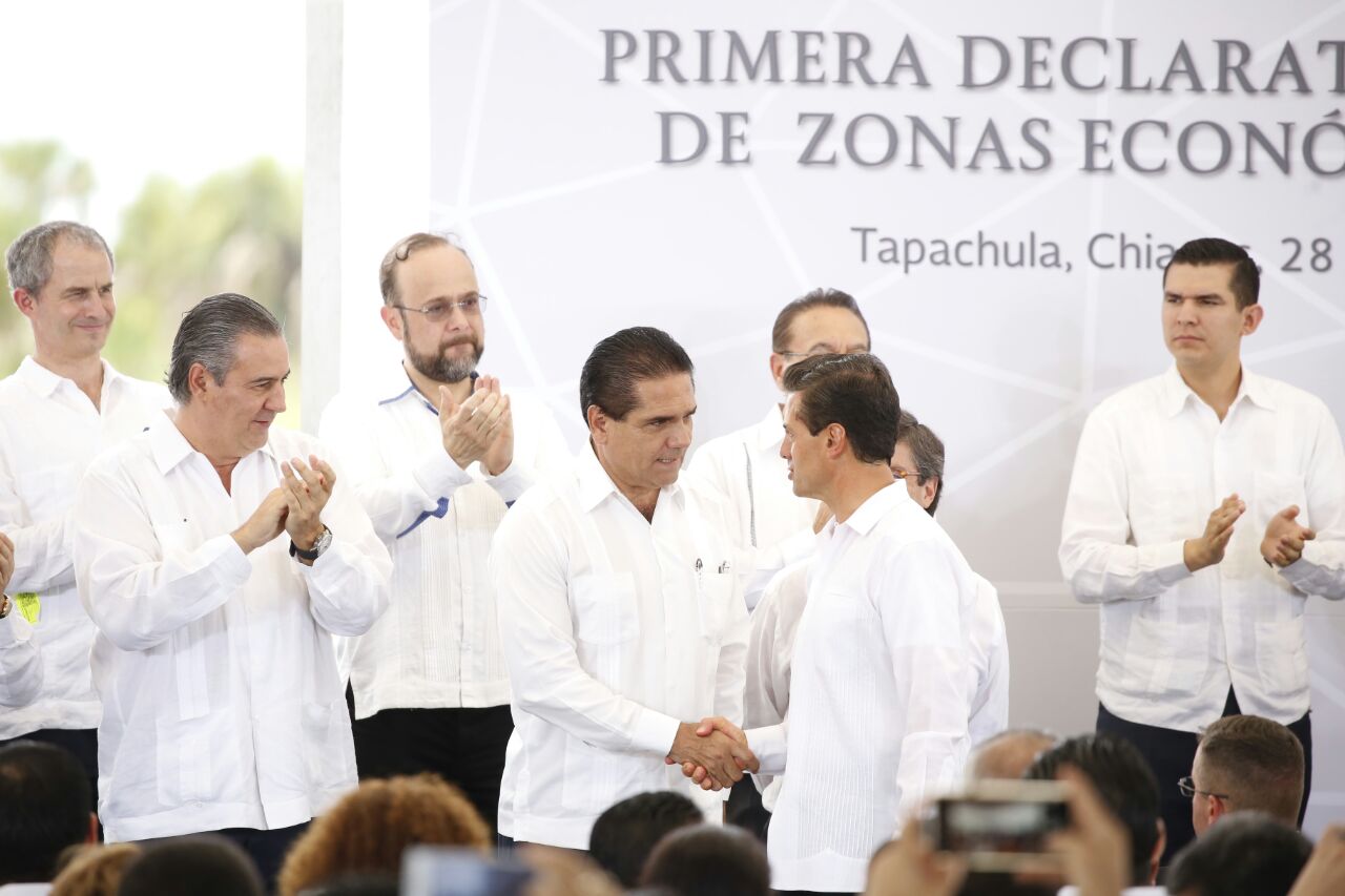 También presidieron este evento el Gobernador de Chiapas, Manuel Velasco Coello; el presidente del Banco Interamericano de Desarrollo, Luis Alberto Moreno Mejía; el secretario de Hacienda y Crédito Público, José Antonio Meade Kuribreña; el titular de la Sagarpa, José Calzada Rovirosa; el secretario de Economía, Ildefonso Guajardo Villarreal; el secretario de Desarrollo Social, Luis Enrique Miranda Nava; los gobernadores de Veracruz y Guerrero, Miguel Ángel Yunes Linares y Héctor Astudillo Flores, respectivamente; así como legisladoras y legisladores, munícipes, representantes de la iniciativa privada, entre otros sectores.