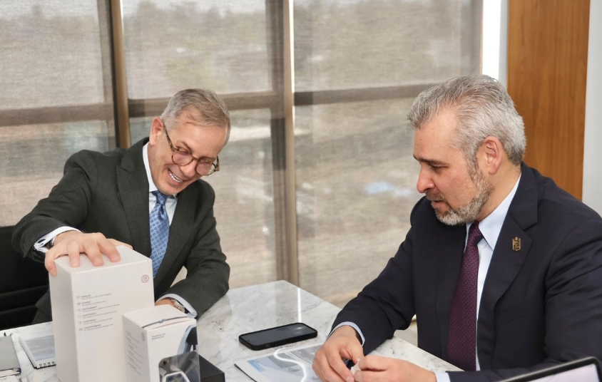 Ciudad de México, 28 de marzo de 2023.- El gobernador Alfredo Ramírez Bedolla se reunió con el director de la empresa internacional de sistemas teleféricos Doppelmayr en México, Konstantinos Panagiotou, para revisar propuestas de ruta, financiamiento de obra y equipamiento del proyecto de cablebús para Uruapan.