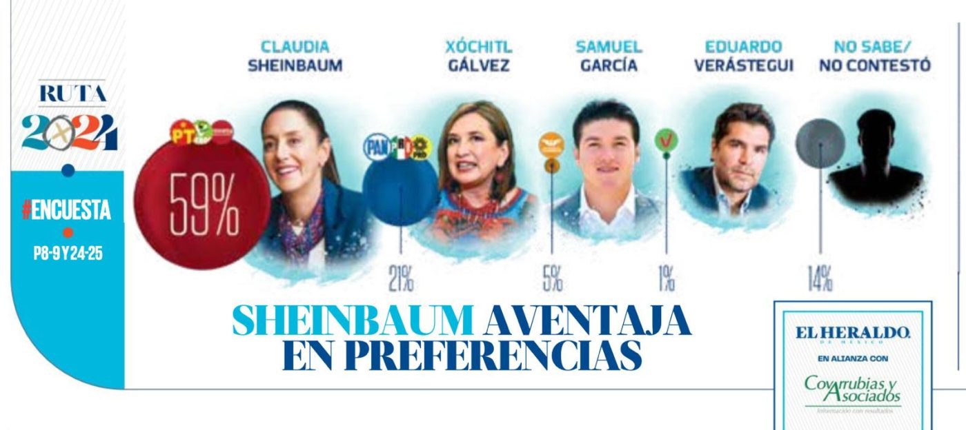 El Heraldo. 13/11/2023. – Si hoy fueran las elecciones para Presidenta o Presidente de la República, Claudia Sheinbaum ganaría la contienda, de acuerdo con la encuesta de Covarrubias y Asociados, para El Heraldo de México.