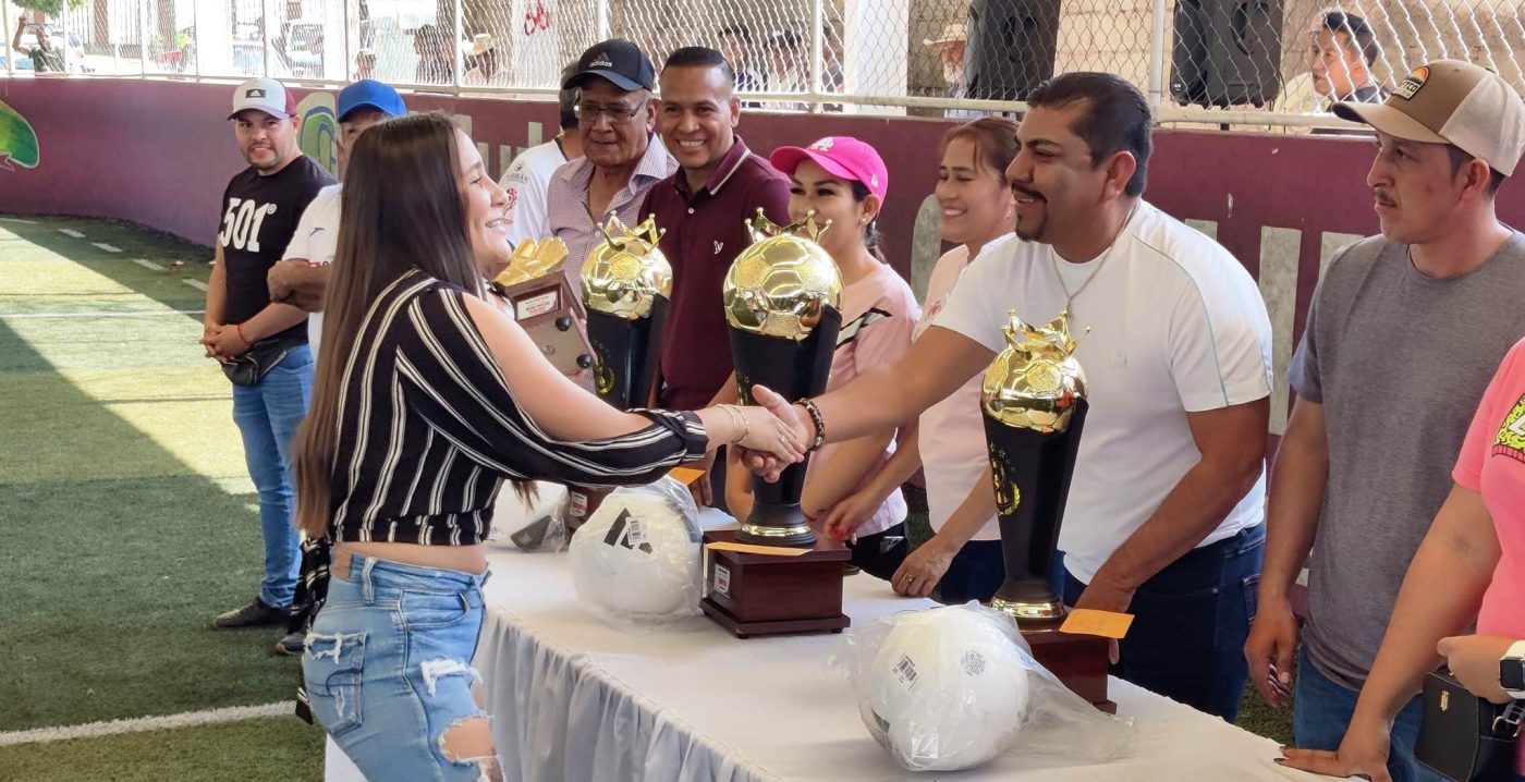 Municipio de Juárez, Mich., a 19 de Noviembre del 2023.- El ayuntamiento presidido por el alcalde Cornelio Ríos Paniagua formó parte de la premiación de las y los participantes ganadores de los encuentros deportivos de fútbol femenil de esta municipalidad organizado por la liga deportiva local.
