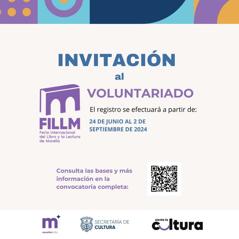 La tercera convocatoria es para personas que deseen formar parte del voluntariado en la FILLM. En este caso, los requisitos completos se podrán encontrar en las cuentas de Facebook e Instagram Secretaría de Cultura de Morelia, aunque se puede adelantar que es necesario tener más de 18 años y contar con disponibilidad de horario. En este caso, el registro de la persona interesada se hará vía electrónica mediante un link y hasta el 2 de septiembre de este año.