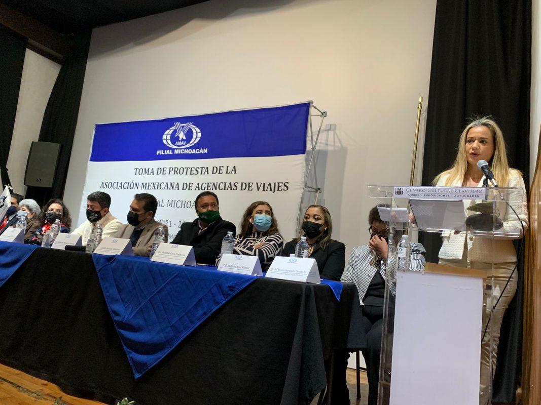 Morelia, Mich., 03 de Diciembre de 2021.- La actividad turística en Morelia comienza una etapa de recuperación importante, por ello, desde el Gobierno Municipal se impulsará el trabajo que realizan las agencias de viaje, así lo afirmó Thelma Aquique Arrieta, secretaria de Turismo de Morelia en el marco de la toma de protesta del nuevo comité de la Asociación Mexicana de Agencias de Viaje filial Michoacán.