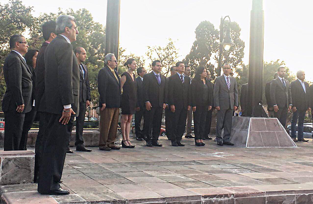 Reunidos en la Plaza Jardín Morelos, la mañana de este jueves los funcionarios municipales presentes, acompañados por estudiantes de nivel secundaria, rindieron honores al Lábaro Patrio para conmemorar esta fecha.