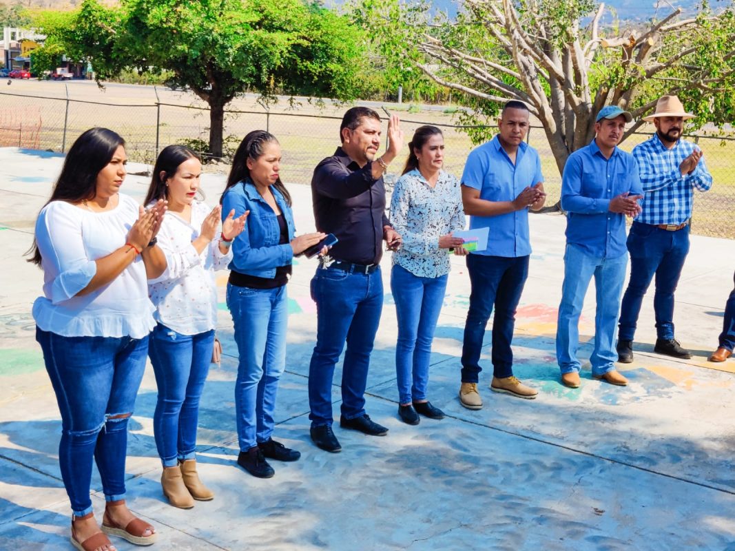 Acompañado de los miembros del cabildo y de los miembros del gabinete de gobierno, el edil Cornelio Ríos Paniagua puso en marcha los trabajos consistentes en la construcción del Domo, además de la extensión del concreto de la cancha según la explicación técnica dada a conocer por el personal de obras públicas.