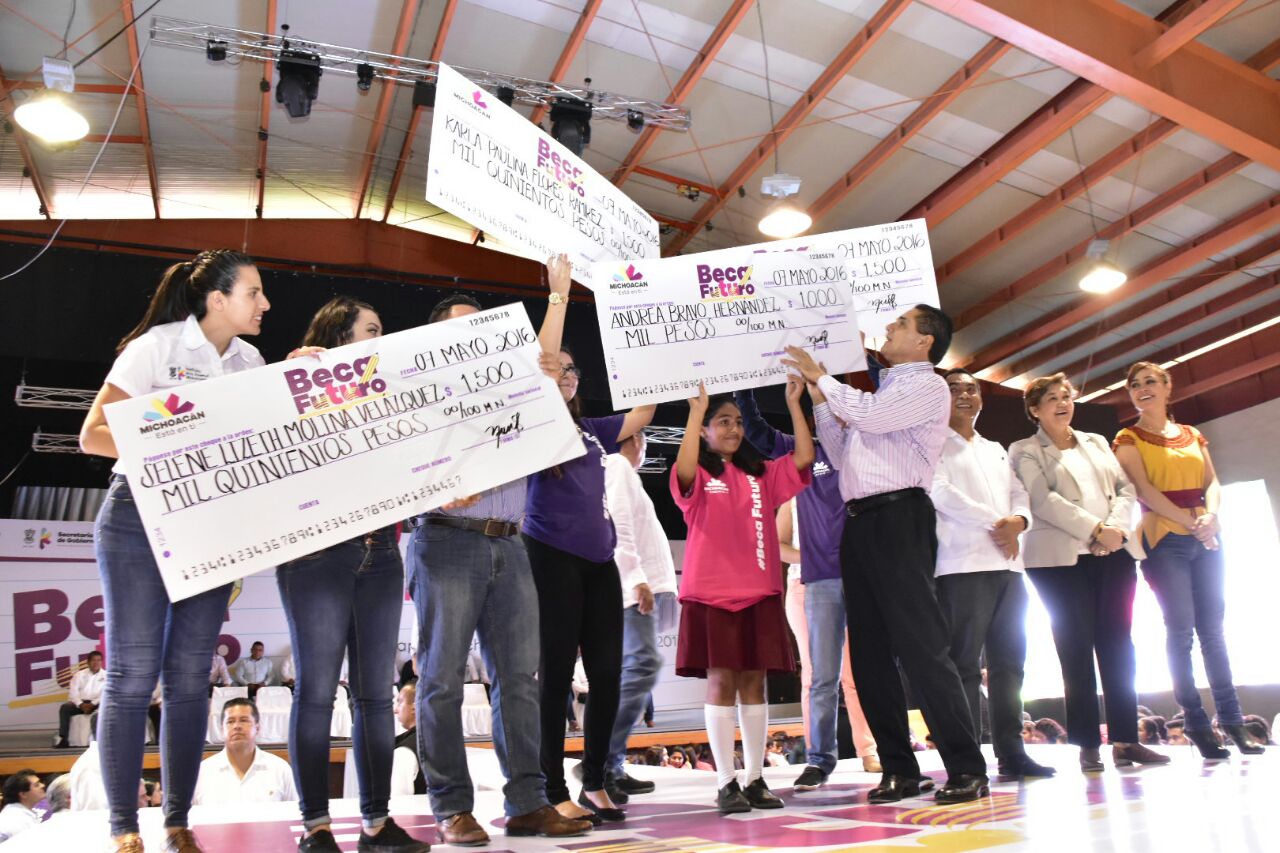 Uruapan, Michoacán, a 08 de Mayo del 2016.- Beca Futuro es un programa novedoso, único en el país y vamos a buscar que se fortalezca cada día más, afirmó el Gobernador Constitucional, Silvano Aureoles Conejo, al hacer entrega de este apoyo en el municipio de Uruapan, a fin de cubrir las distintas regiones del estado.