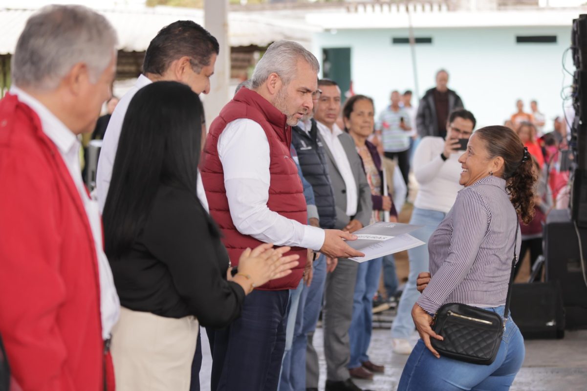 Uruapan, Mich., 4 de Diciembre de 2023.- El gobernador Alfredo Ramírez Bedolla, entregó 300 escrituras de propiedad a habitantes de la colonia Clara Córdova Morán, del municipio de Uruapan.