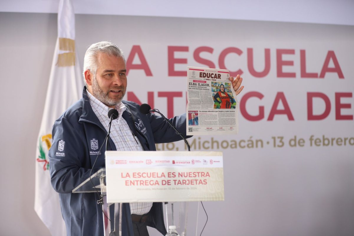 En el marco de la entrega de tarjetas La Escuela es Nuestra, en Maravatío, el mandatario celebró que una maestra de la región esté haciendo historia con el proyecto de huerto en la comunidad Melchor Ocampo, donde las niñas y niños aprenden a cuidar el medio ambiente, sembrar y tener una alimentación saludable.