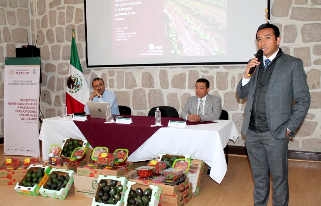 Morelia, Michoacán, a 22 de enero de 2019.-El Instituto Mexicano del Seguro Social (IMSS) dio a conocer, desde la capital michoacana, los beneficios fiscales para patrones y trabajadores eventuales del campo 2019-2020, de acuerdo con el Decreto publicado en el Diario Oficial de la Federación.