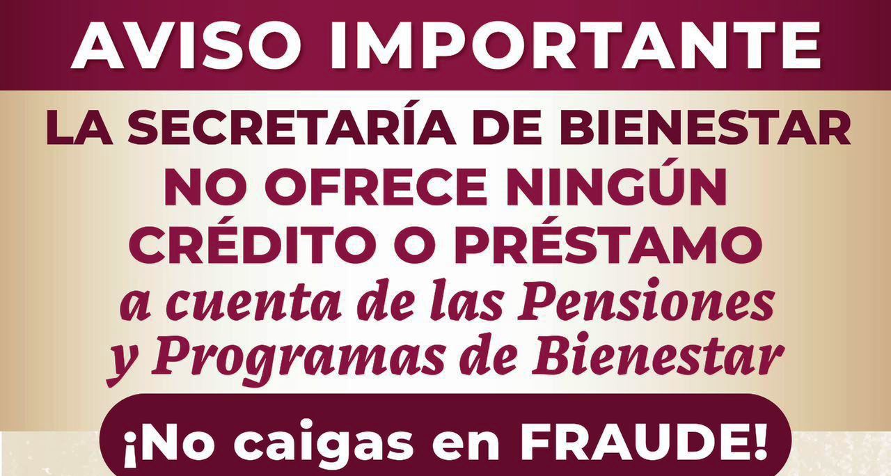 Convocó a la población a no dejarse sorprender por este tipo de engaños, no contestar los mensajes donde se les ofrecen préstamos, ni proporcionar datos personales, número o NIP de la tarjeta del Banco del Bienestar.