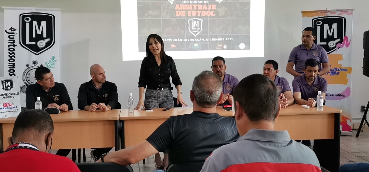 Apatzingán, Mich., a 03 de Diciembre de 2021.- “El apoyo a todas las actividades que tengan que ver con el deporte, serán siempre una de mis prioridades, como representante popular”, manifestó la regidora, Blanca Álvarez Chávez, al inaugurar el Primer Curso de Arbitraje de Fútbol, que se realiza en las instalaciones del Instituto Tecnológico.