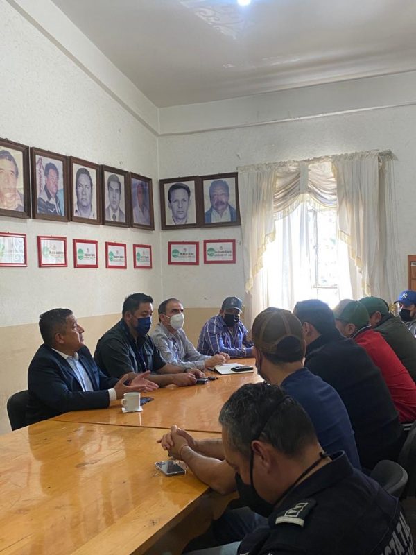 Nuevo Parangaricutiro, Mich., a 19 de Febrero del 2022.- A fin de brindar seguridad en el proceso productivo del aguacate, los titulares de la Secretaría de Seguridad Pública (SSP) encabezaron una reunión de trabajo en este municipio con las autoridades municipales, empresarios de la Asociación de Productores y Empacadores de Aguacate en Michoacán (APEAM) y funcionarios del Departamento de Agricultura de los Estados Unidos (USDA).Estas mesas de trabajo regionales tienen como objetivo dar continuidad a los acuerdos recientes entre el gobierno del estado y la embajada estadounidense que permitieron la reactivación de la exportación del fruto al vecino país del norte, a través de los cuales la SSP brindará seguridad a los productores michoacanos y los inspectores norteamericanos para una comercialización óptima.Para ello, los elementos de la Policía Michoacán darán un acompañamiento físico y de patrullajes permanentes a lo largo de los caminos, las carreteras y las huertas del municipio por donde transitan los inspectores de USDA durante sus labores de supervisión de calidad; asimismo, se dará resguardo en el traslado del producto hacia los empaques.Con estas labores de vigilancia la SSP hace valer el estado de derecho en el traslado y la comercialización del aguacate.