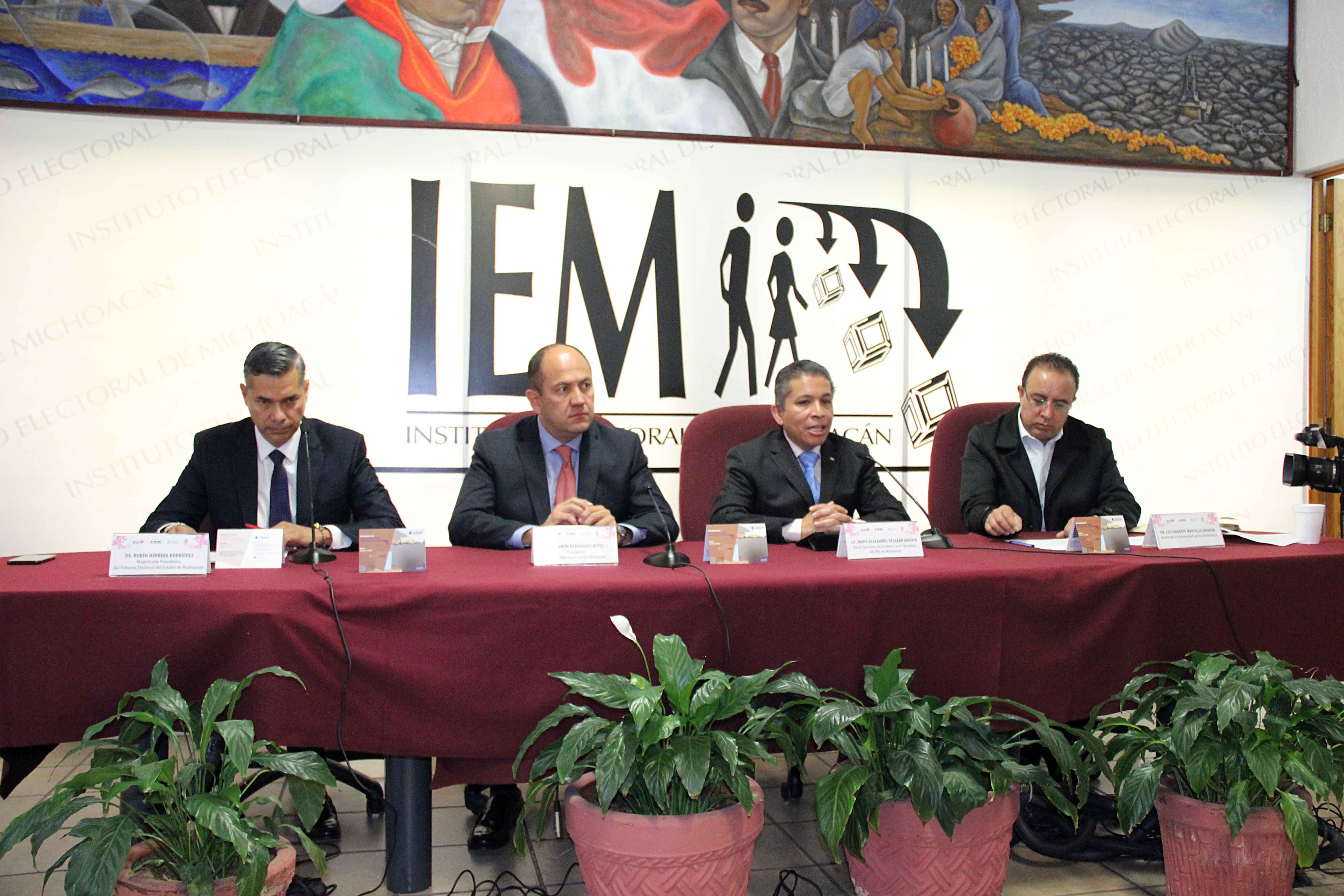 Morelia, Michoacán; a 22 de agosto de 2017.- En un esfuerzo conjunto para promover y potenciar el ejercicio de los derechos político-electorales, fomentar la participación ciudadana, difundir las etapas de los procesos electorales y la cultura de la legalidad; el Instituto Electoral de Michoacán (IEM), la Junta Local del Instituto Nacional Electoral (INE), el Tribunal Electoral del Estado de Michoacán (TEEM) y la Universidad Latina de América (UNLA) presentaron el Diplomado en Derecho Electoral y Desarrollo Democrático que iniciará el próximo 6 de octubre.