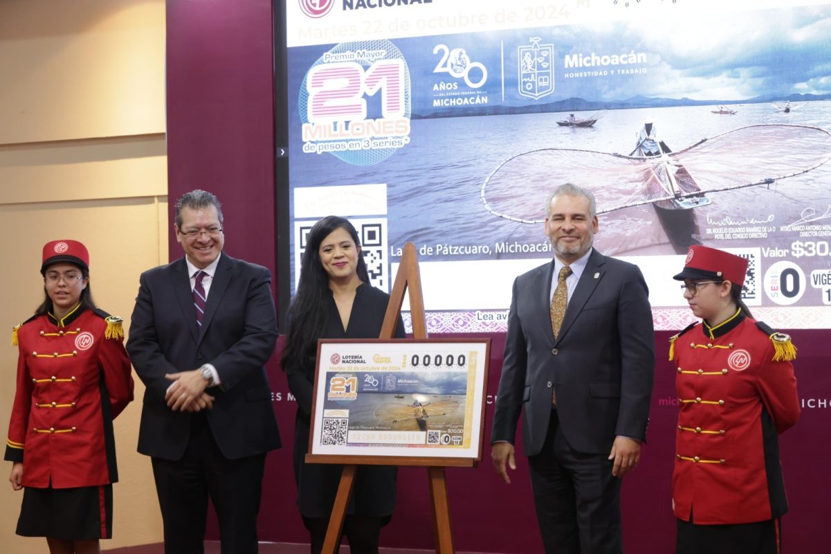 Morelia, Mich., 21 de octubre de 2024.- La inigualable belleza del lago de Pátzcuaro llega a todo México a través del «cachito» de lotería que conmemora los 200 años de Michoacán como estado libre y soberano. Tiene un costo de 30 pesos y se encuentra disponible en las tiendas de pronósticos de todo el país.