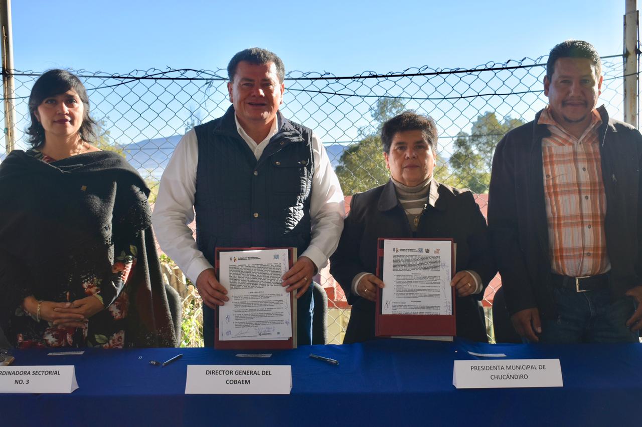 Chucándiro, Michoacán, a 14 de marzo de 2019.- Con la premisa de elevar la calidad educativa en Michoacán, con clases todos los días, excelencia académica, atención al magisterio y dignificación de aulas, temas prioritarios en la agenda de trabajo del Gobernador Silvano Aureles Conejo, el Colegio de Bachilleres del Estado (Cobaem), formó alianza con la presidencia municipal de Chucándiro..