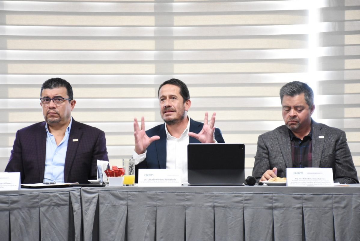 Morelia, Mich., 24 de Enero del 2023.- Un llamado a no dejar pasar la oportunidad que se presenta para el desarrollo económico de la entidad, y con ello, reposicionar a Michoacán, hizo este martes el secretario Claudio Méndez Fernández, a integrantes del Consejo Coordinador Empresarial del Estado de Michoacán (CCEEM).