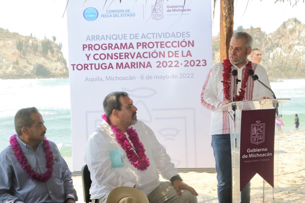 Al encabezar el arranque de actividades del Programa de Protección y Conservación de la Tortuga Marina 2022-2023, en la localidad de Maruata, municipio de Aquila, el mandatario estatal enfatizó el interés de la administración para apoyar y fortalecer estas labores en coordinación con las presidencias municipales de la zona.